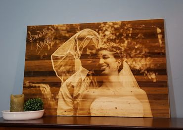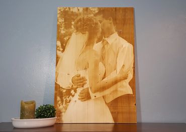 To receive your own photo engraved into wood, send an email to: ericandnikki@spectrumdesignsmo.com Please include this info in your email to us: 1- Your name 2- Your phone number 3- Your shipping address 4- Words you want to be included in photo (optional) 5- Size of photo you want (sizes & prices above) 6- A good quality photo attached to email (if you are unsure of the quality, we are happy to review it before payment) After we receive your order, we will send an invoice back to you via email. You will be able to securely pay via credit card directly from that email. Once payment has cleared, we will create and ship your photo. *If you have requested words on your photo, we will send a proof back to make sure you like the layout before we make it.